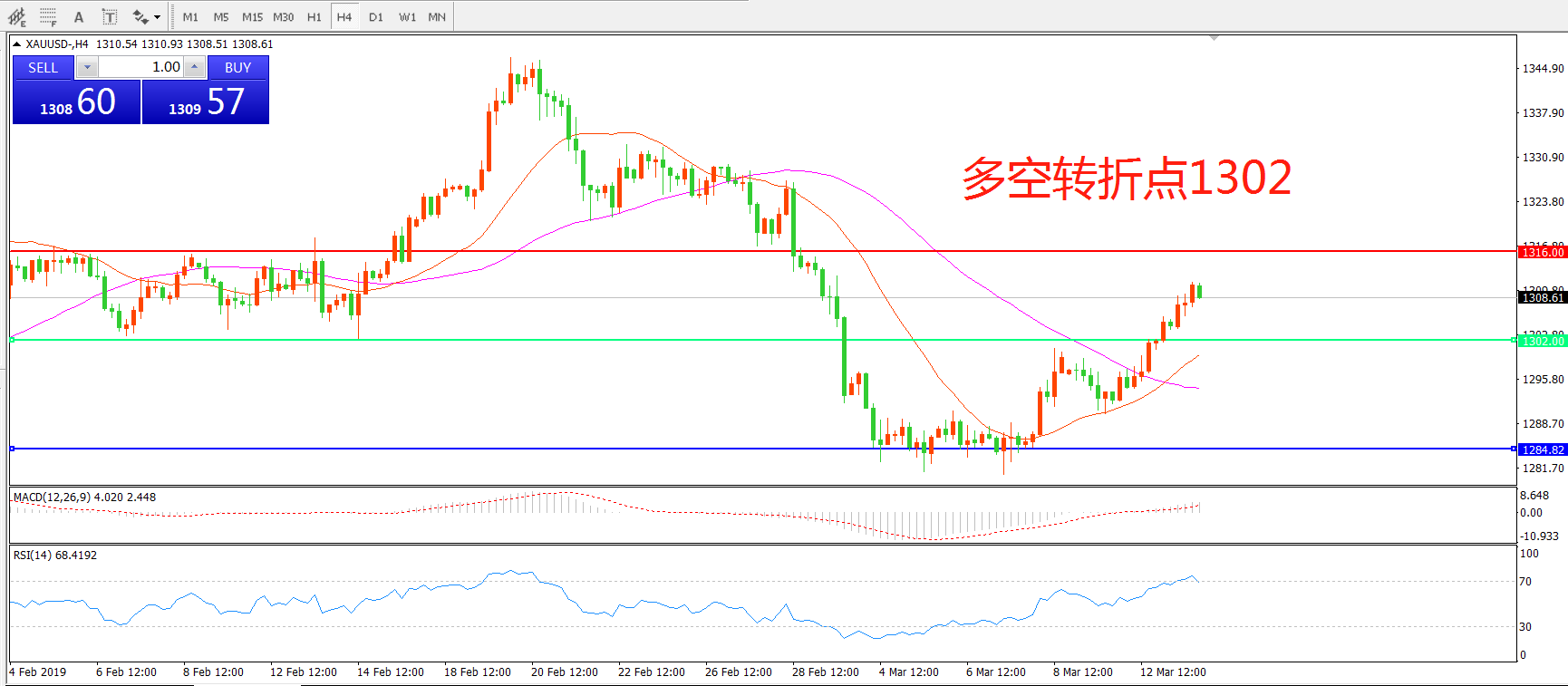 多空转折点:1302.00