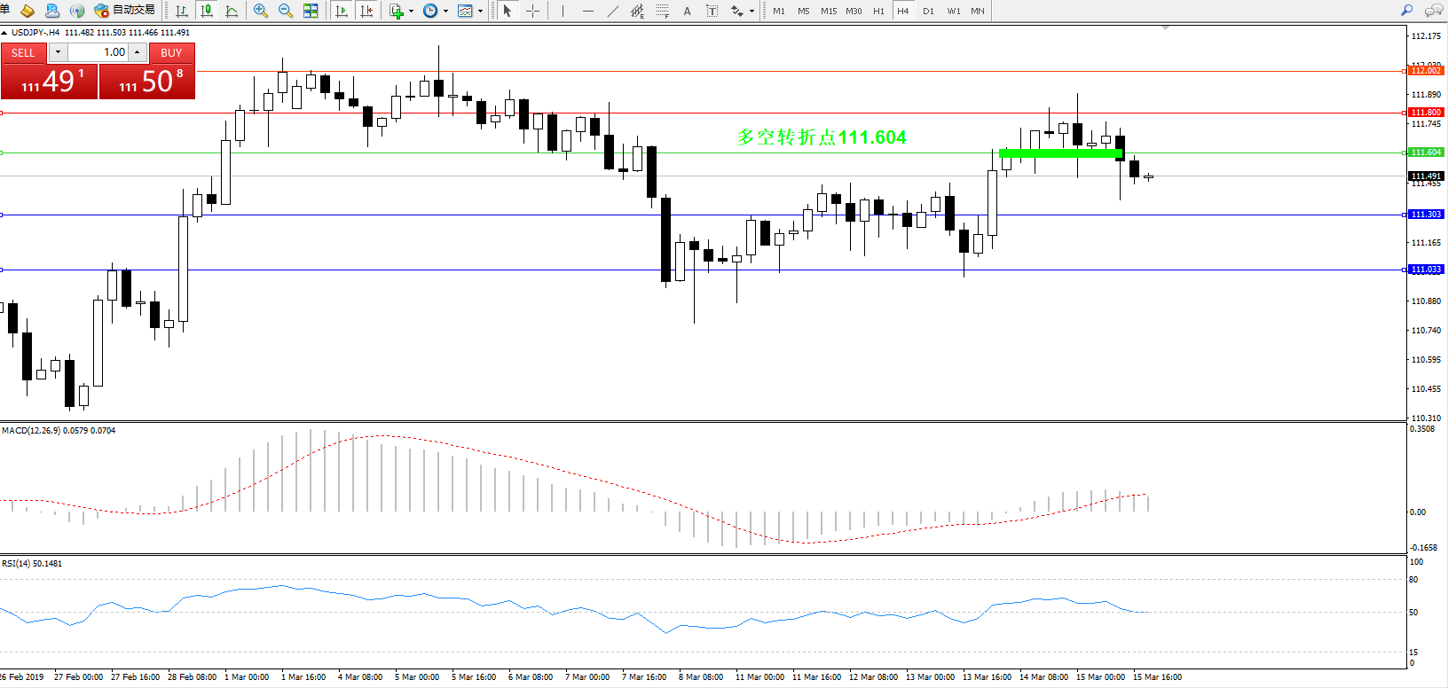 备选策略:111.604上方看涨,目标111.800、112.002
