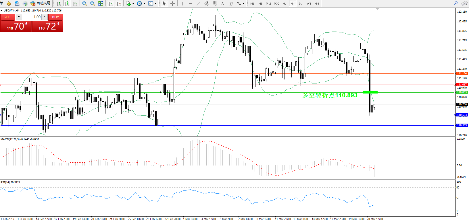 交易策略:110.893下方看跌,目标110.533、110.369