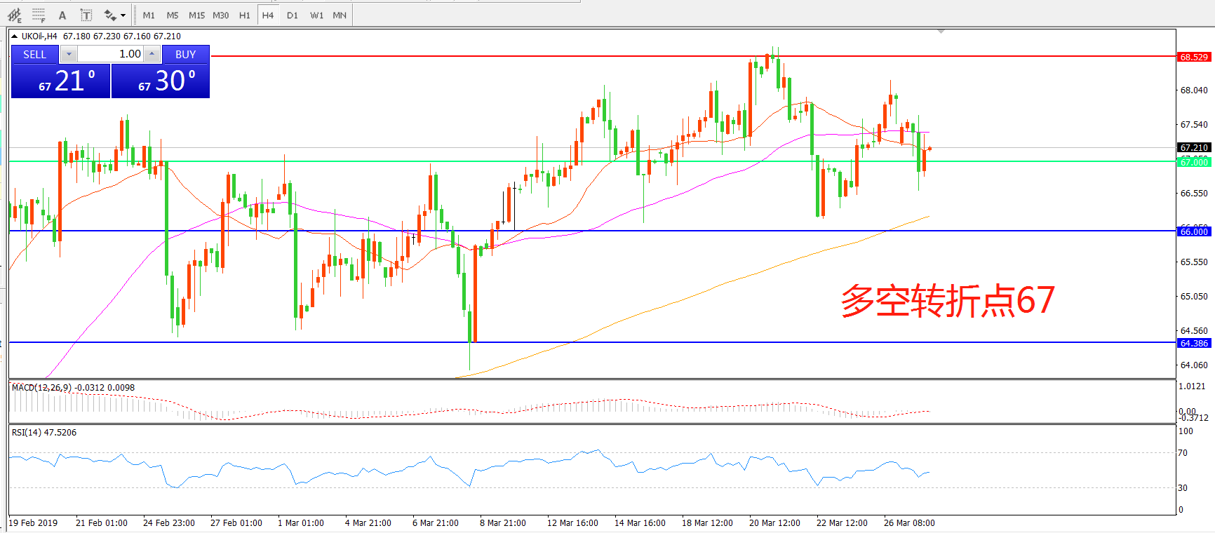 多空转折点:67.00