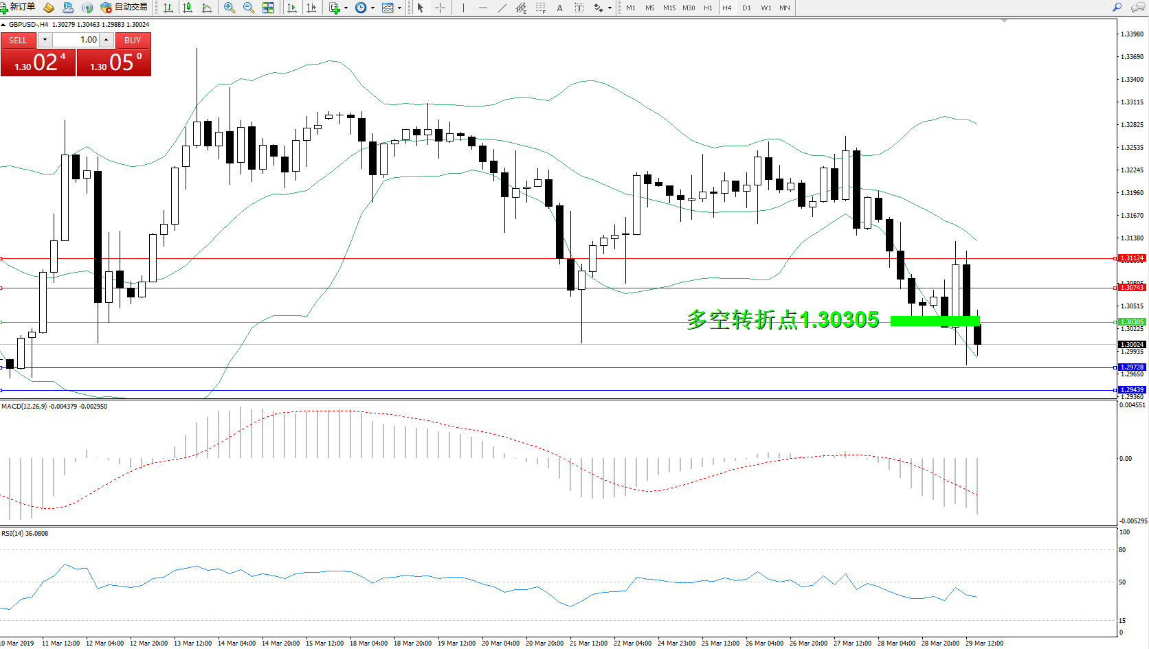 交易策略:1.30305下方看跌,目标1.29728、1.29439
