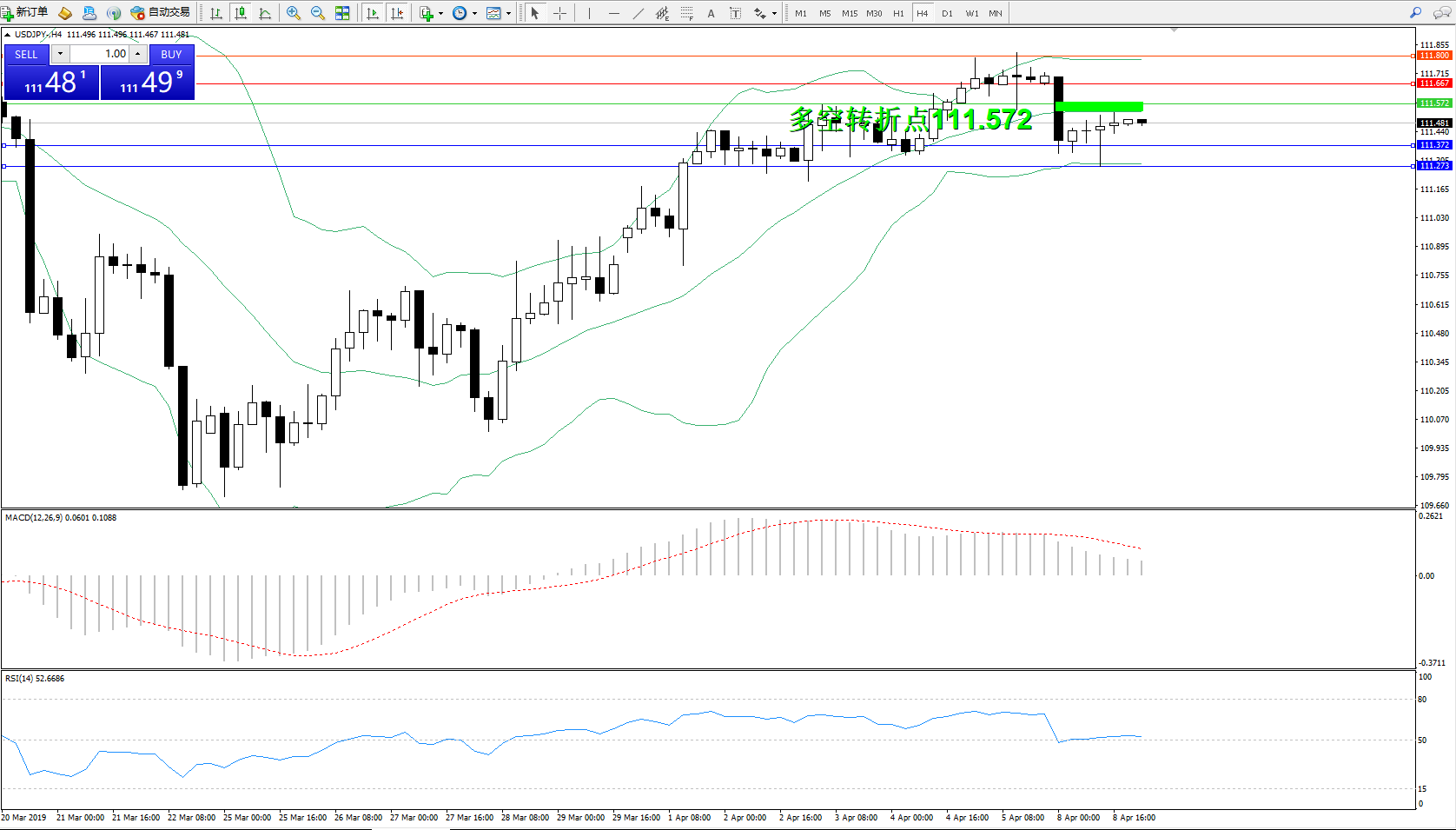 交易策略:111.572下方看跌,目标111.372111.273