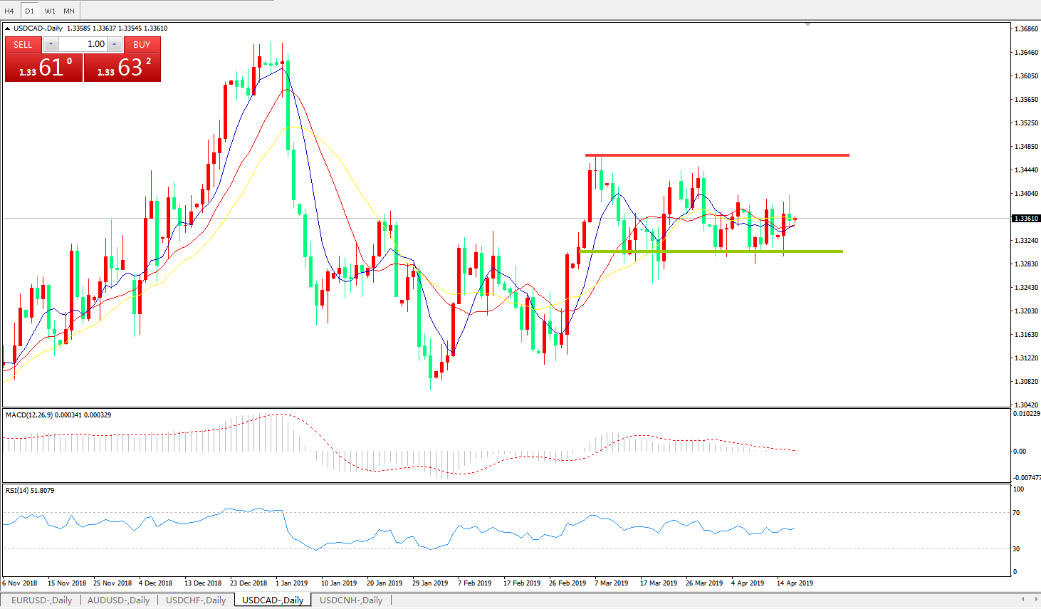 美元兑加元USDCAD 日线图: