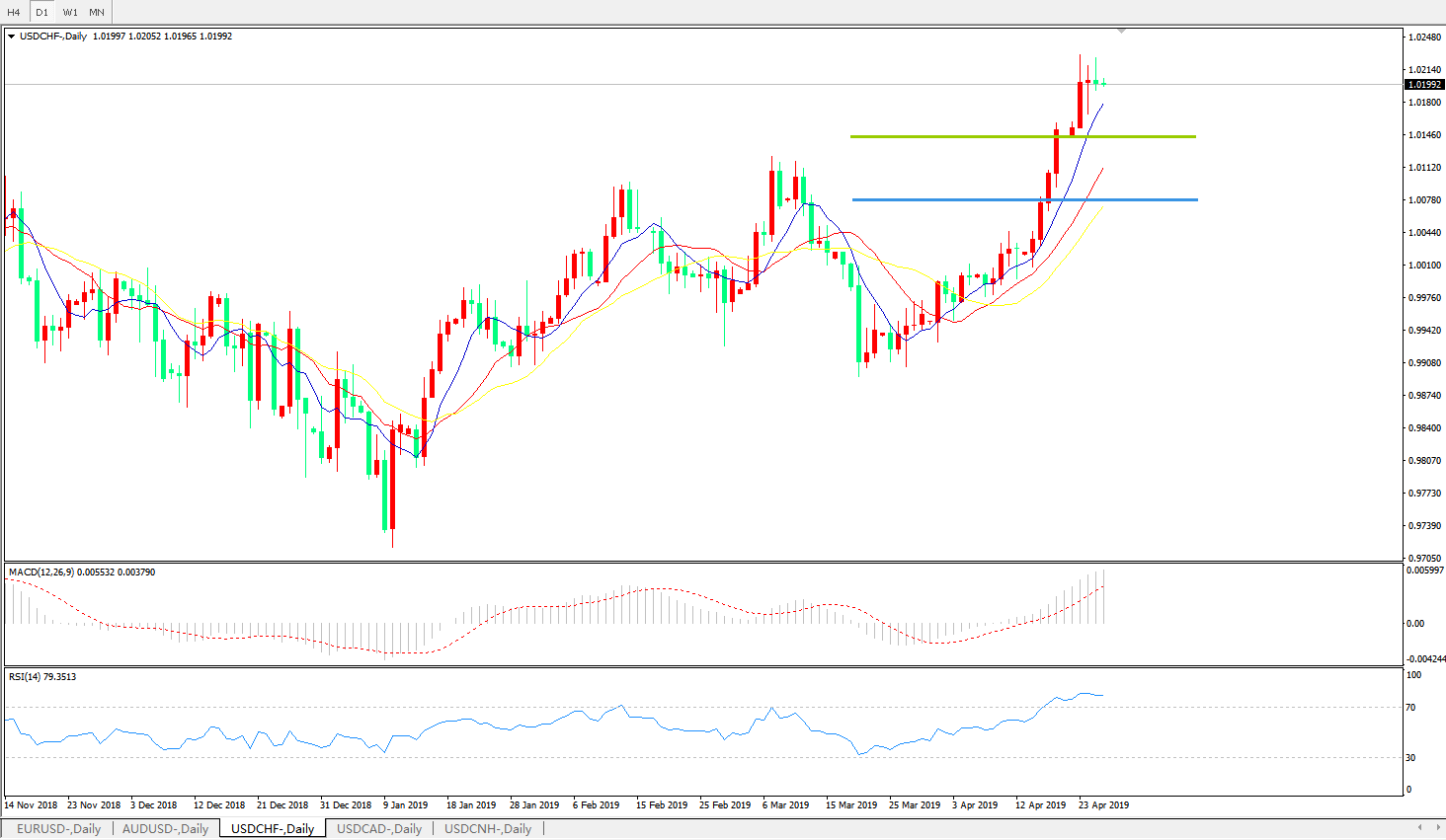 美元兑瑞郎USDCHF 日线图: