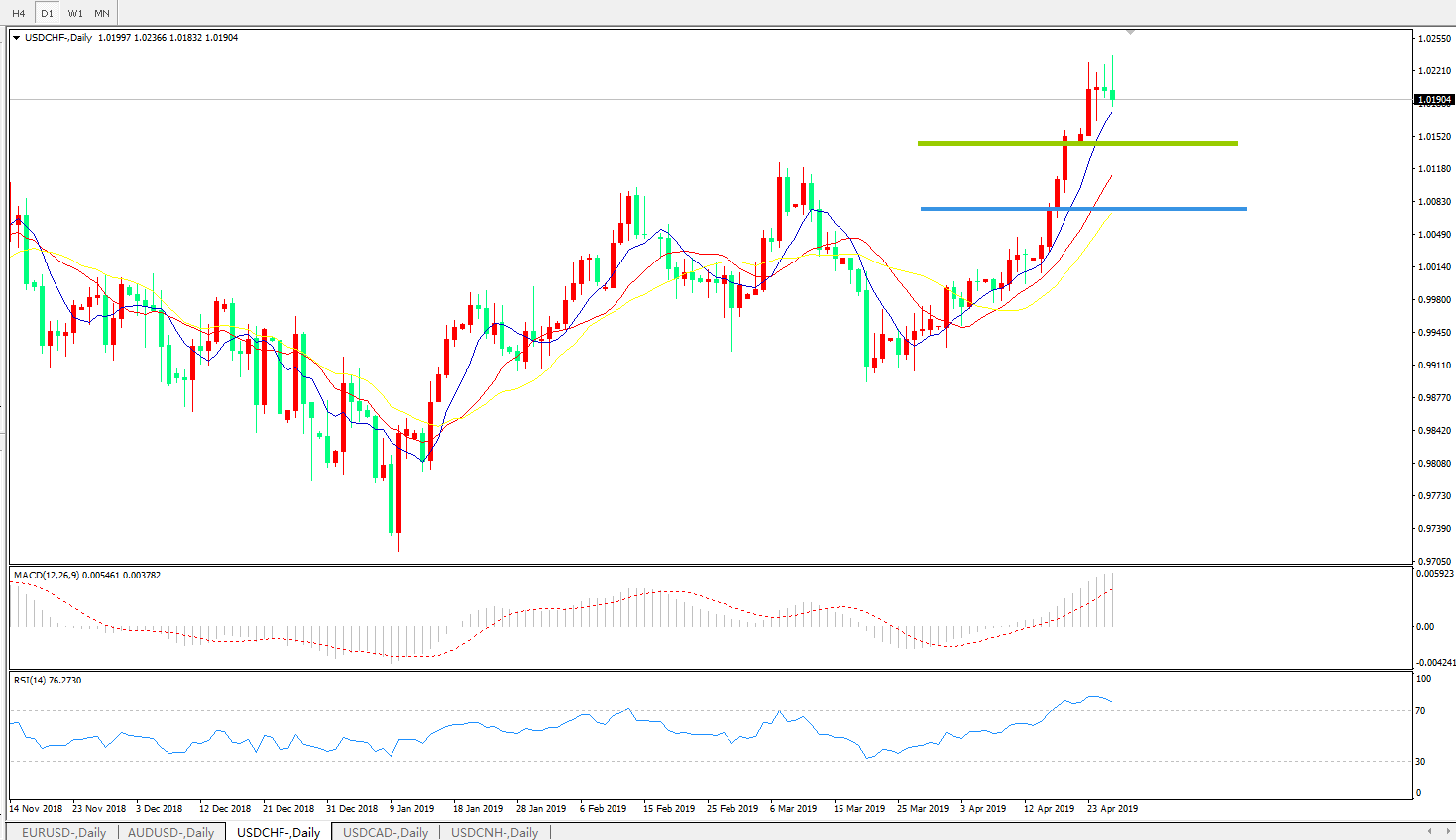 美元兑瑞郎USDCHF 日线图: