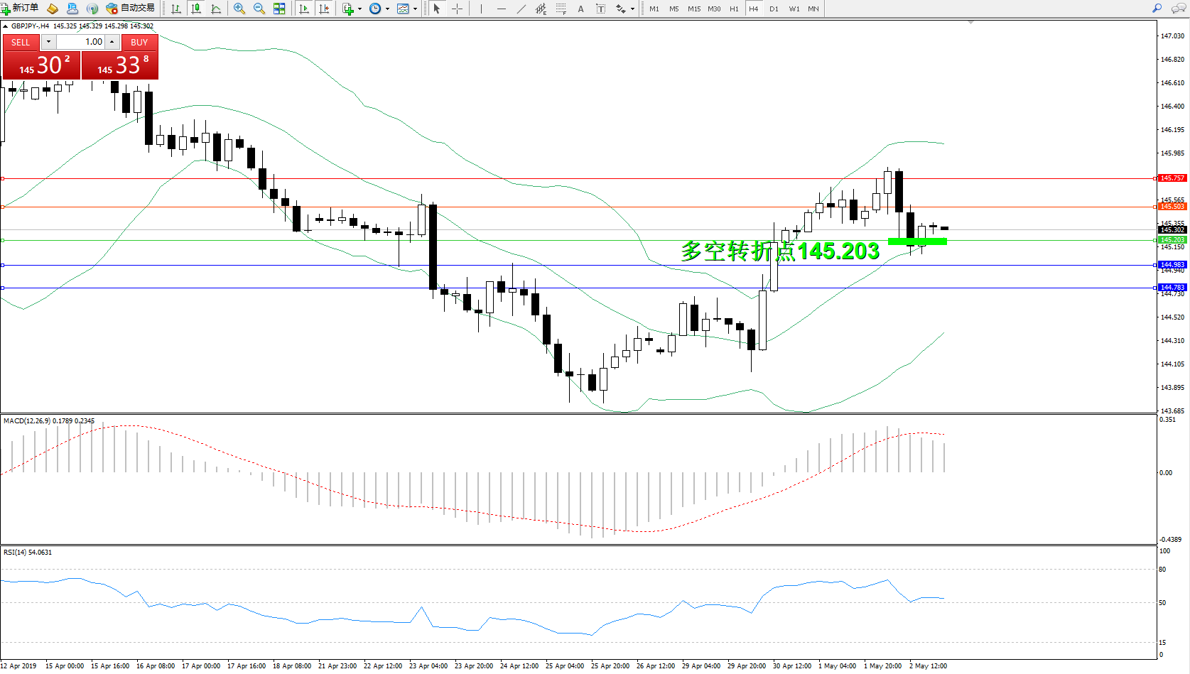 交易策略:145.203上方看涨,目标145.503、145.757