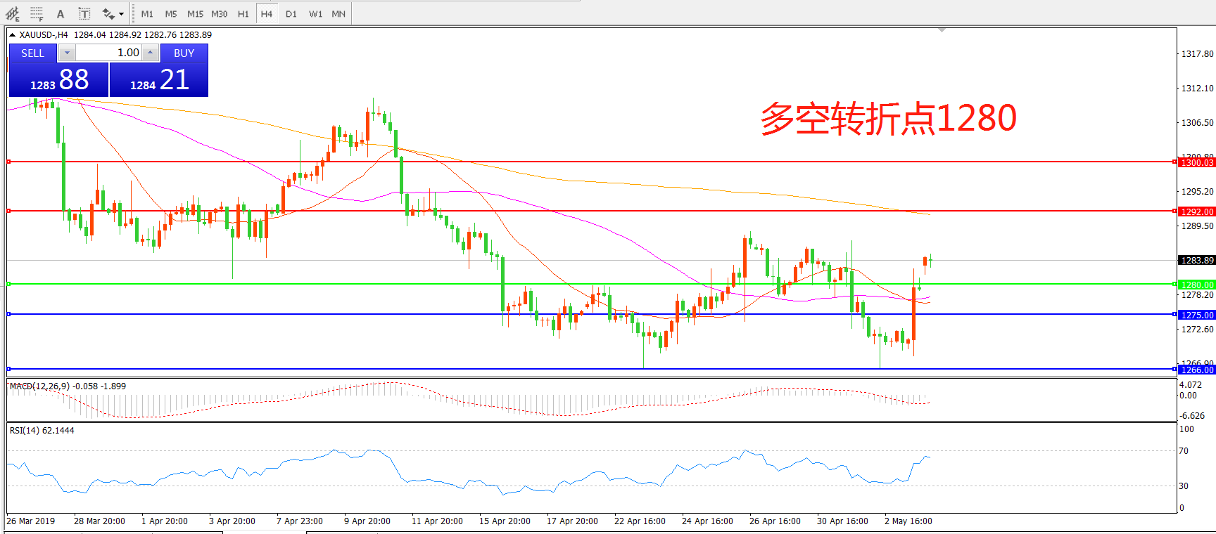 多空转折点:1280.00