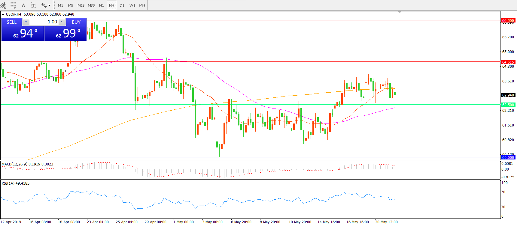 交易策略:在62.50之上看涨,目标64.50    66.50