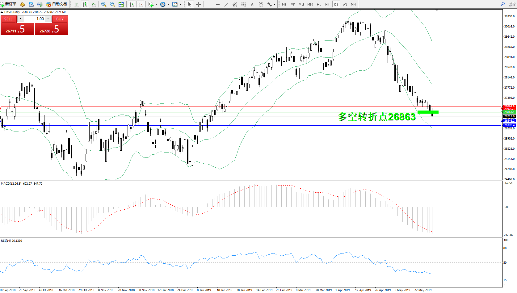 交易策略:26863下方看跌,目标26546、26376
