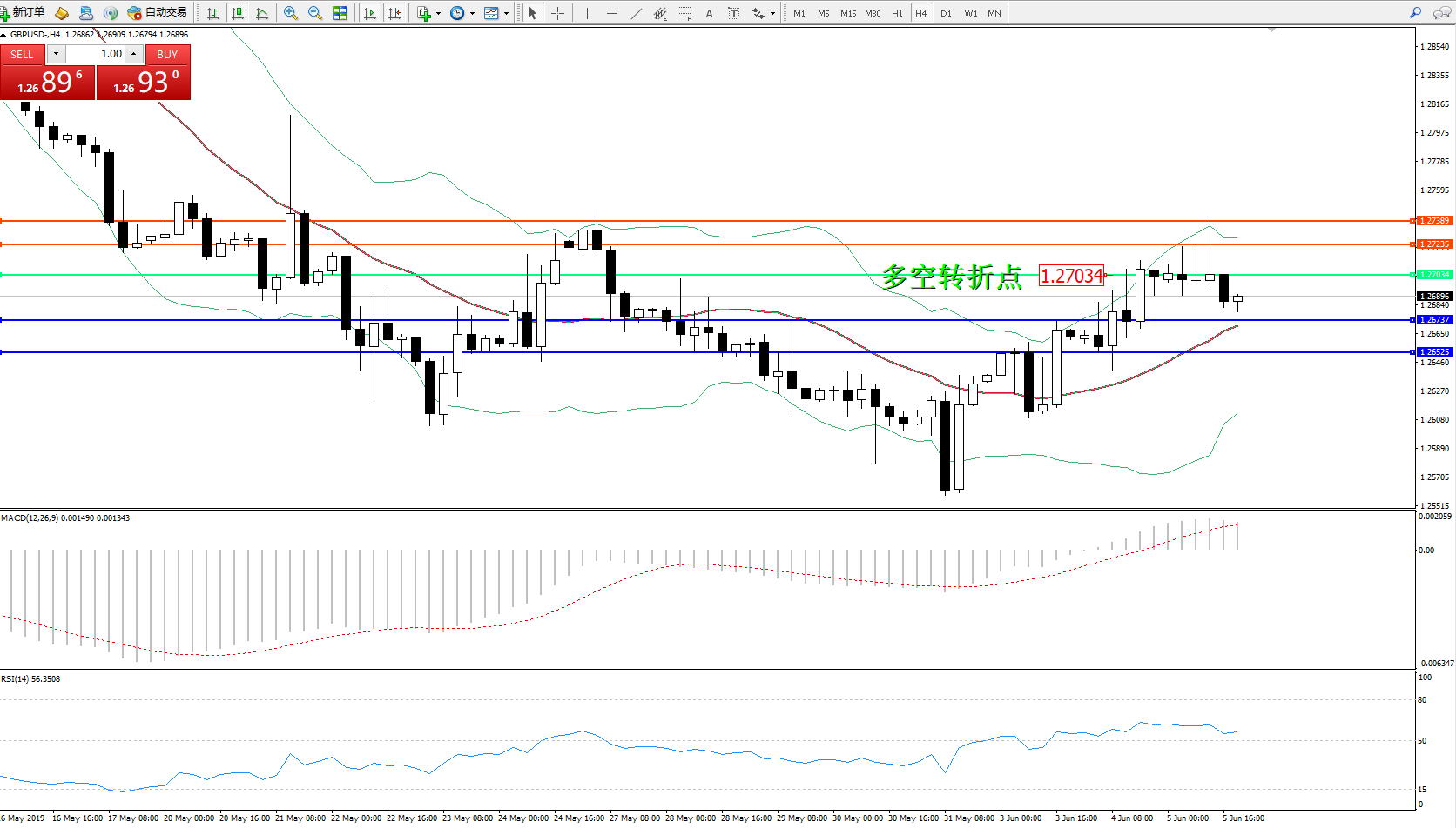 交易策略:1.27034下方看跌,目标1.26737、1.26525
