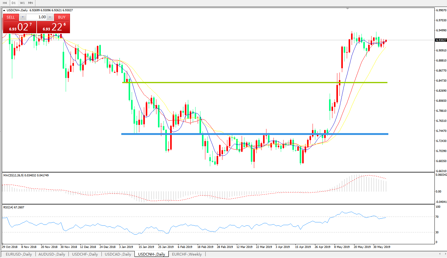 交易策略6.8450之上,看涨,目标价位为6.9200,然后为6.9400。