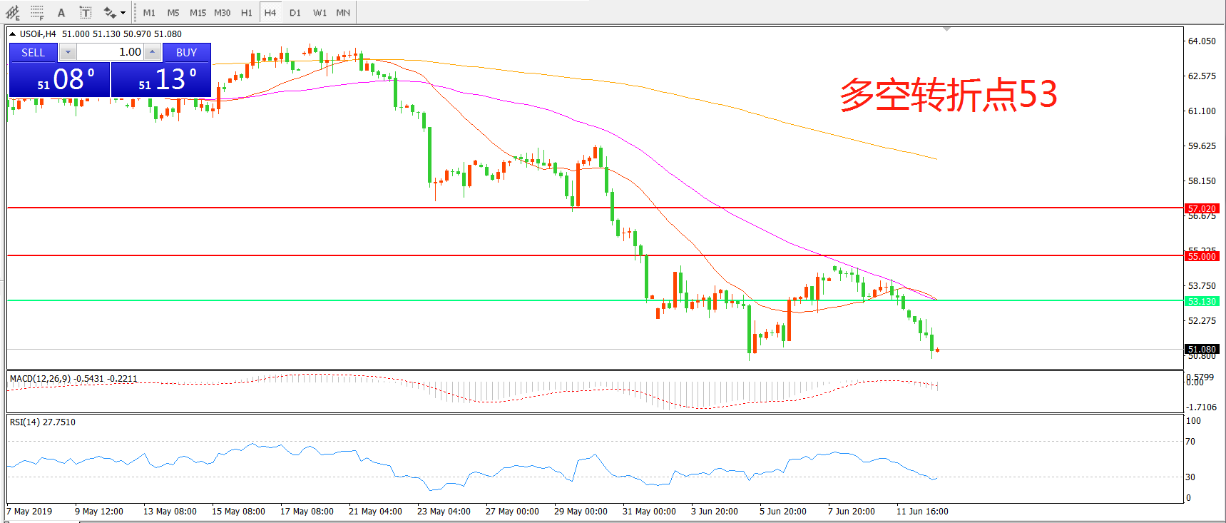 多空转折点:53.00
