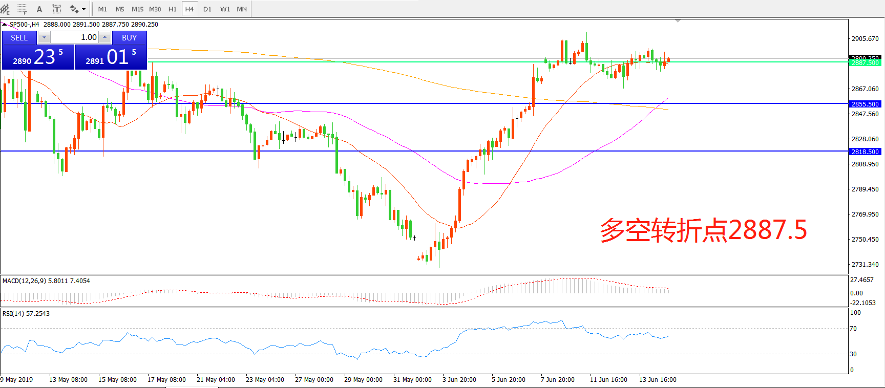 多空转折点:2887.50