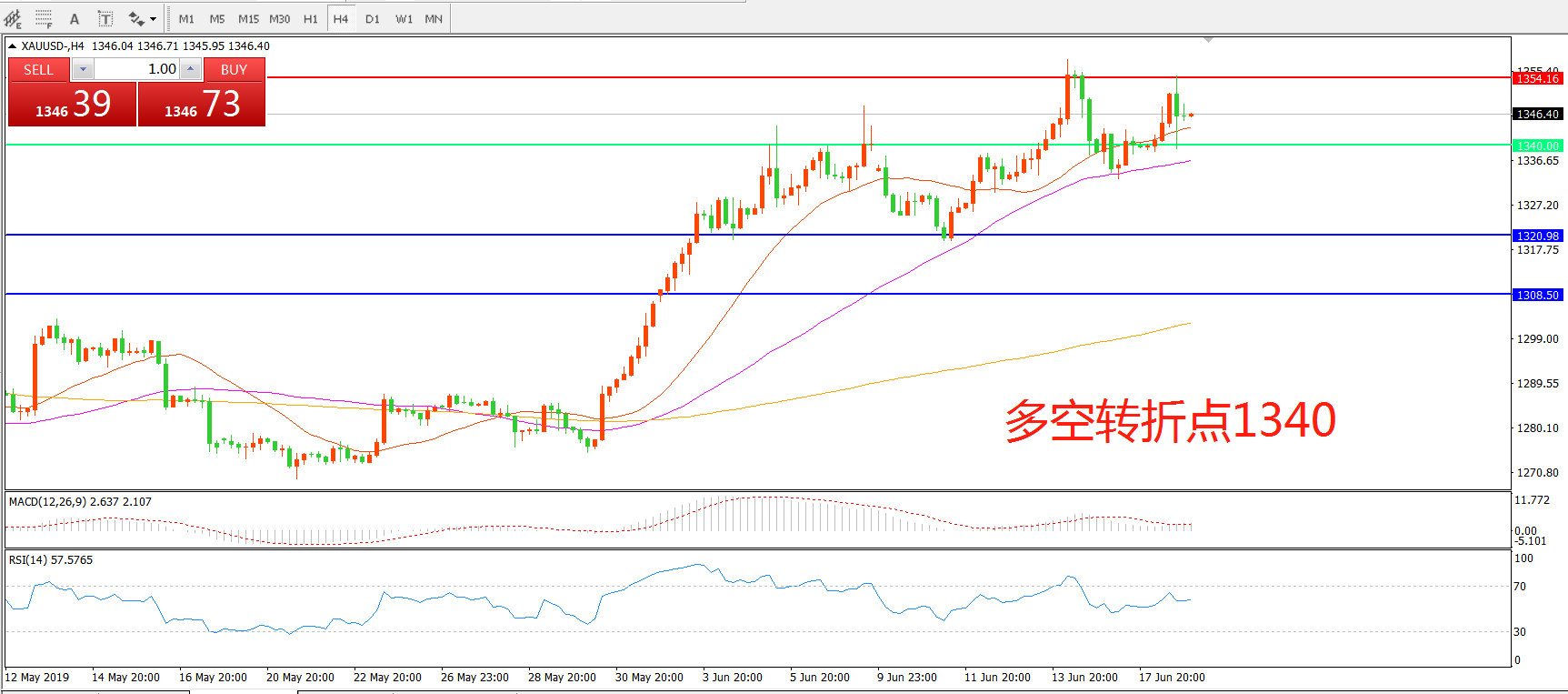多空转折点:1340.00