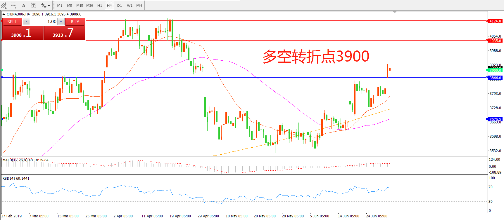 多空转折点:3900.00