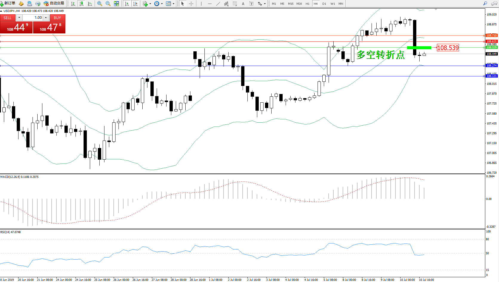 交易策略:108.539下方看跌,目标108.274108.121