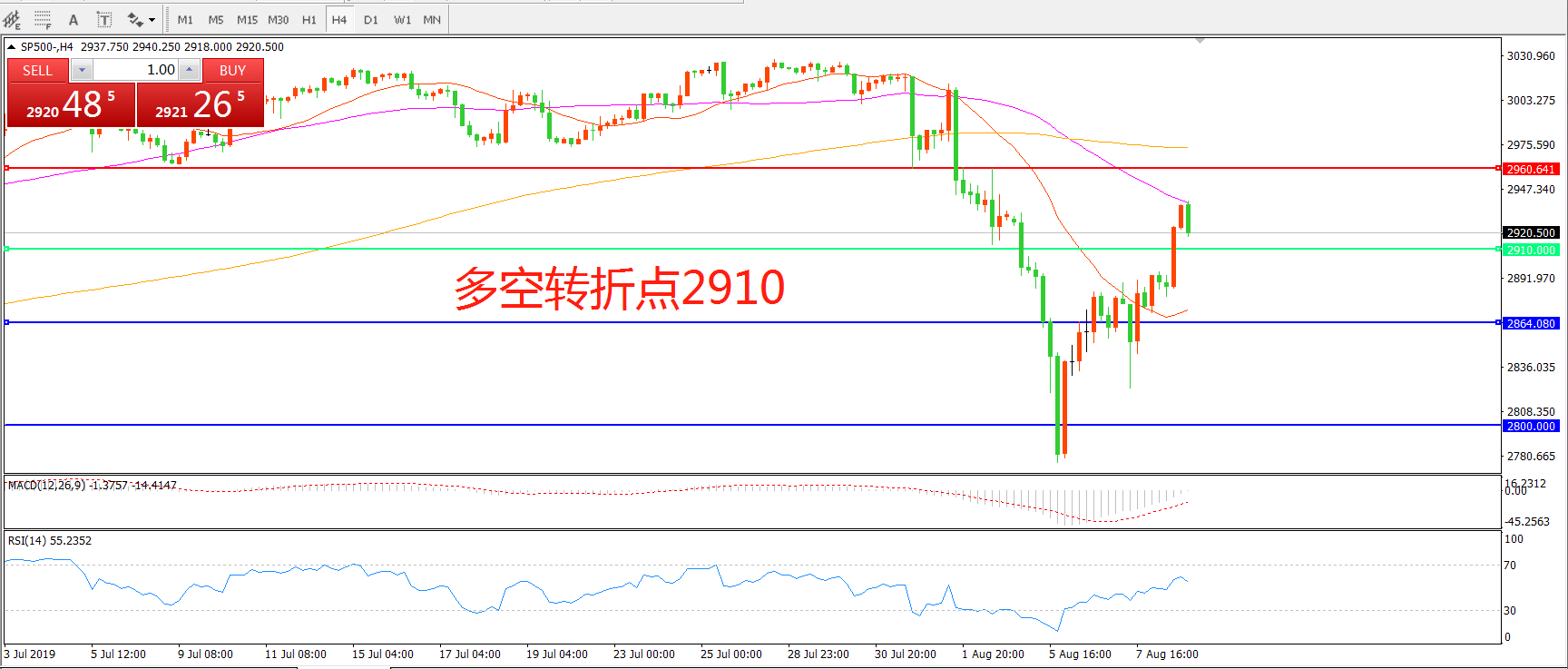 多空转折点:2910.00