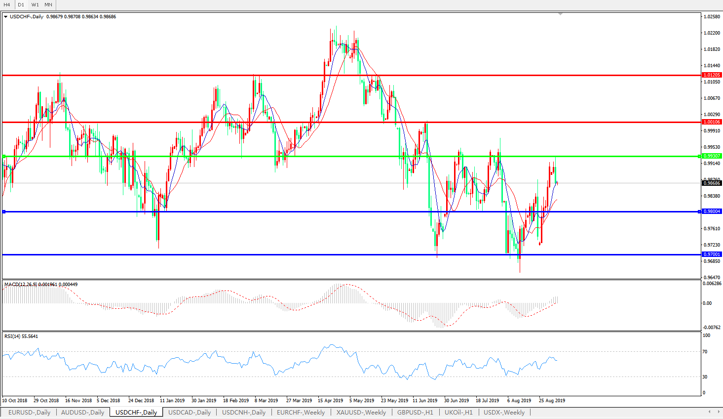 美元兑瑞郎USDCHF 日线图: