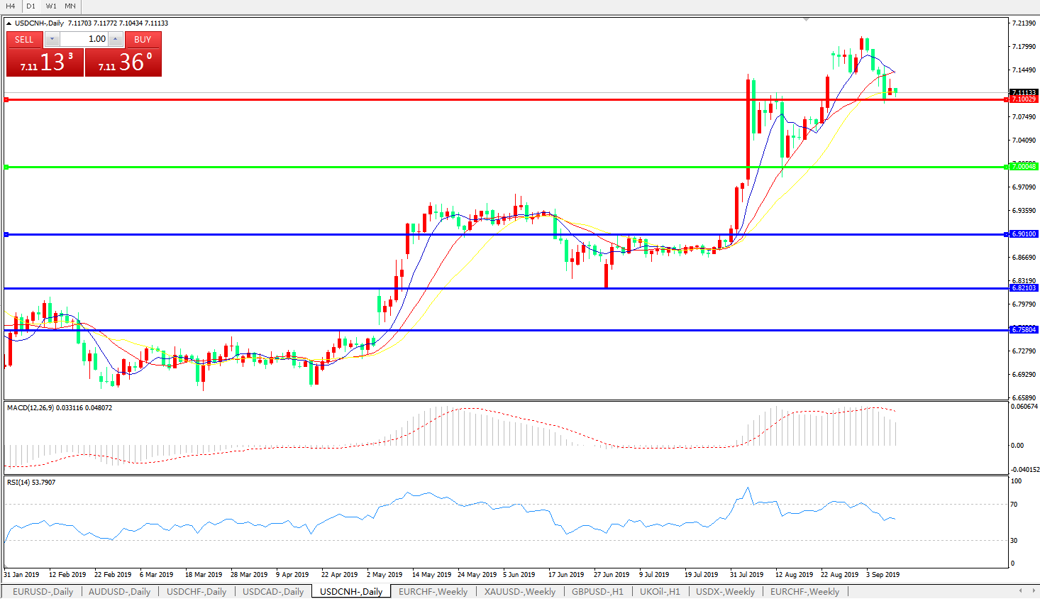 交易策略: 在7.0000之上,看涨,目标价位为7.1000,然后为7.2000。