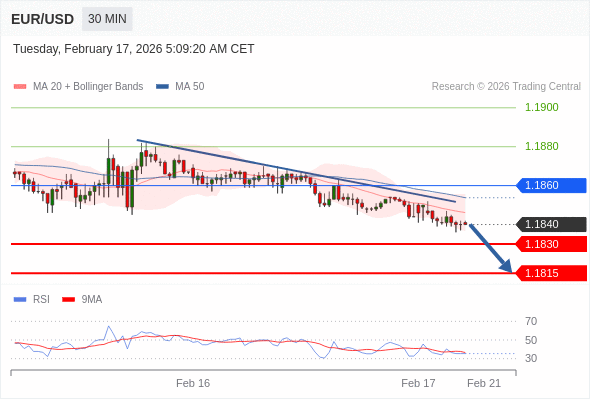 交易策略: 在 1.1860 之下,看跌,目标价位为 1.1830 ,然后为 1.1815 。