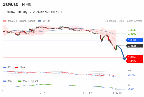 英镑/美元 当日内 : 看跌,在 1.3564 之下。