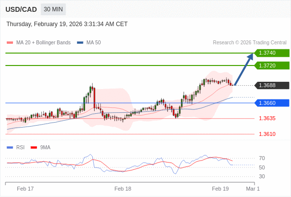 在 1.3660 之上,看涨,目标价位为 1.3720 ,然后为 1.3740 。