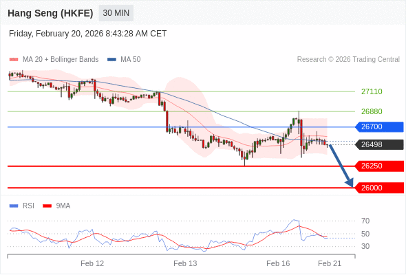 在 26700 之下,看跌,目标价位为 26250 ,然后为 26000 。