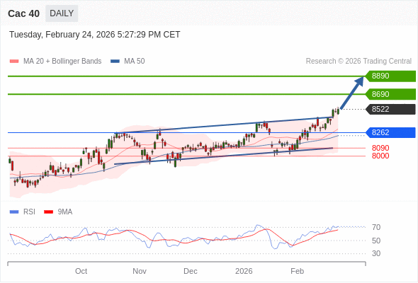 Cac 40 短线: 进一步上涨。
