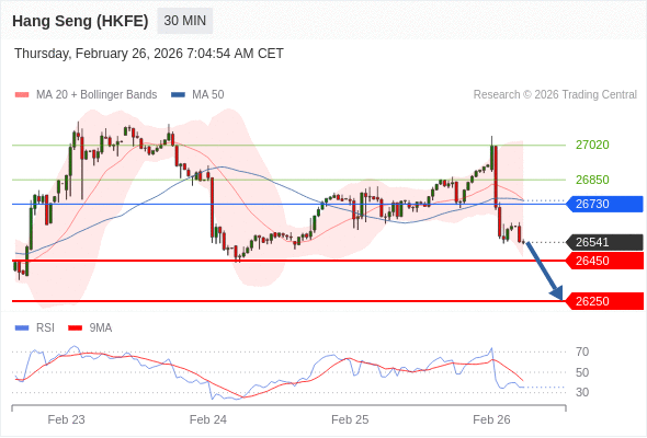 在 26730 之下,看跌,目标价位为 26450 ,然后为 26250 。