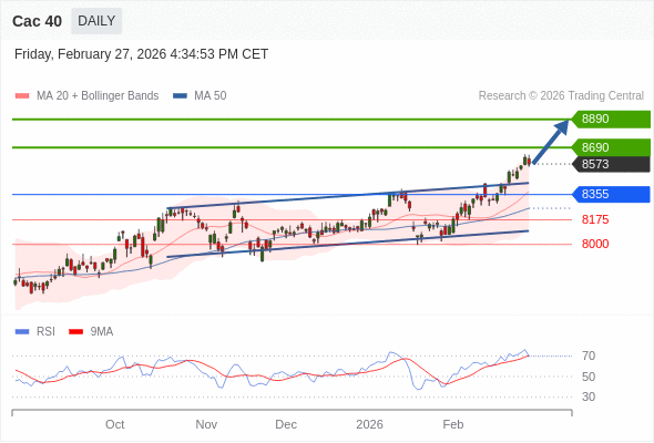 交易策略: 在 8355 之上,看涨,目标价位为 8690 ,然后为 8890 。