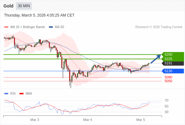 在 5130 之上,看涨,目标价位为 5225 ,然后为 5260 。