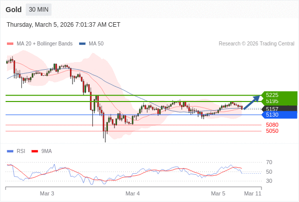 在 5130 之上,看涨,目标价位为 5195 ,然后为 5225 。