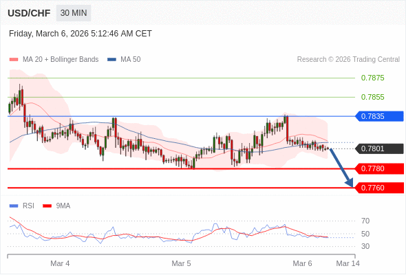 在 0.7835 之下,看跌,目标价位为 0.7780 ,然后为 0.7760 。