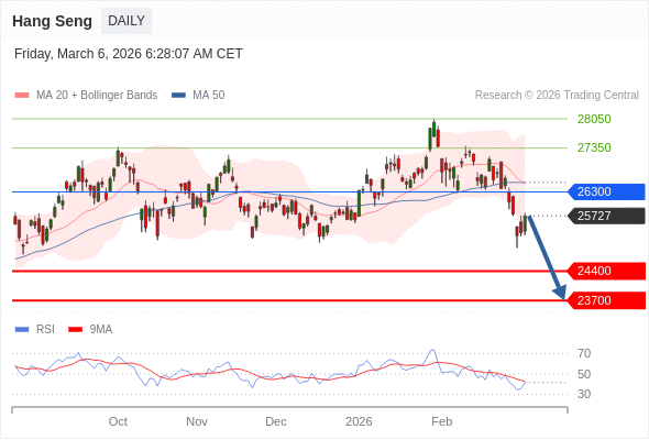 交易策略: 在 26300 之下,看跌,目标价位为 24400 ,然后为 23700 。