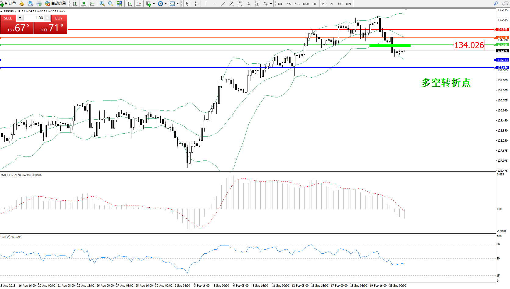 交易策略:134.026下方看跌,目标133.113132.656