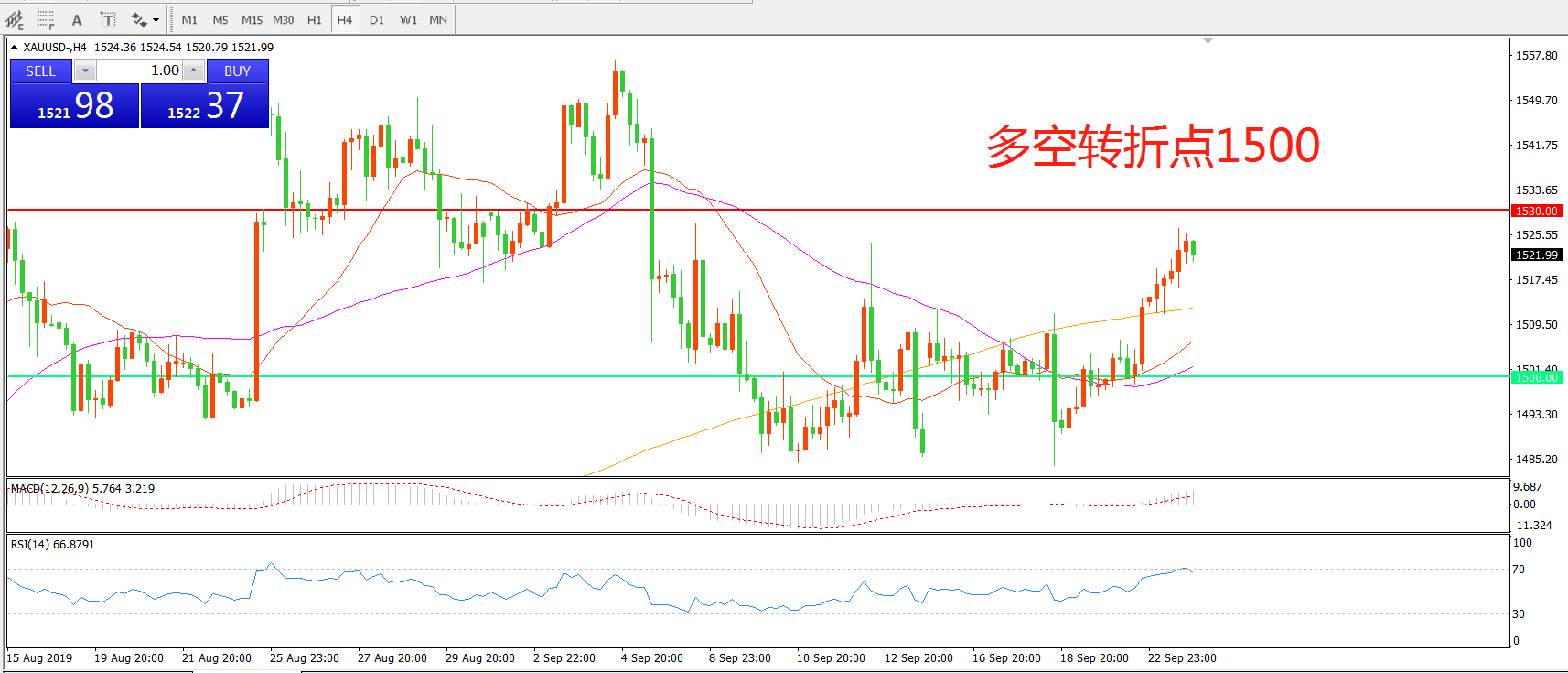多空转折点:1500.00