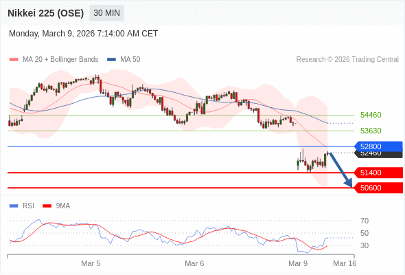 日经225股指期货 (OSE) 当日内: 短期关键阻力位在52800。