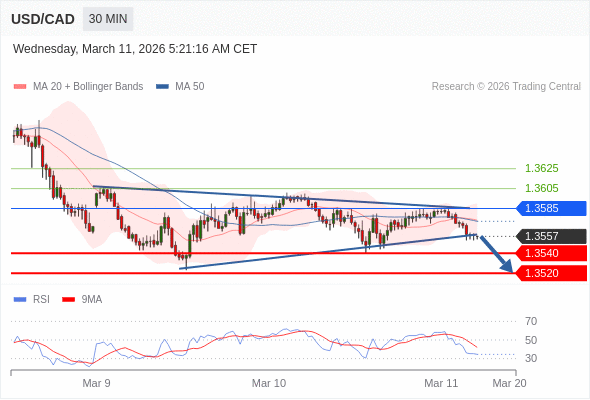 在 1.3585 之下,看跌,目标价位为 1.3540 ,然后为 1.3520 。