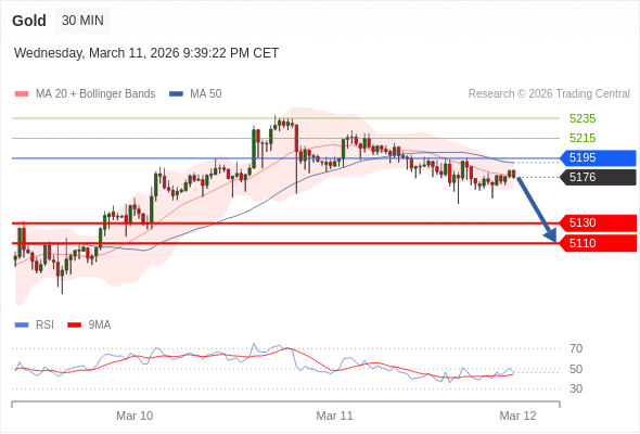 在 5195 之下,看跌,目标价位为 5130 ,然后为 5110 。