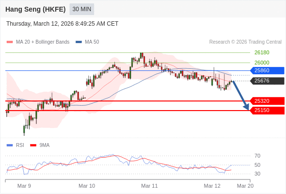 香港恒生指数期货 当日内: 短期关键阻力位在25860。