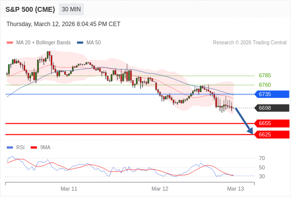 在 6735 之下,看跌,目标价位为 6655 ,然后为 6625 。