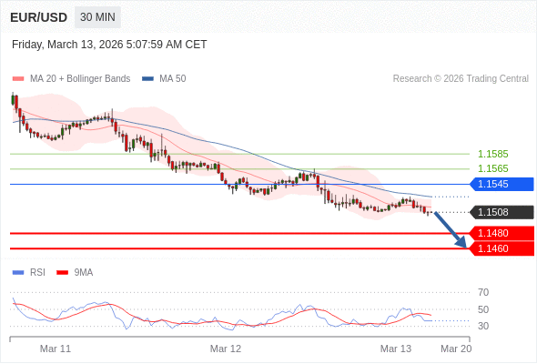 交易策略: 在 1.1545 之下,看跌,目标价位为 1.1480 ,然后为 1.1460 。