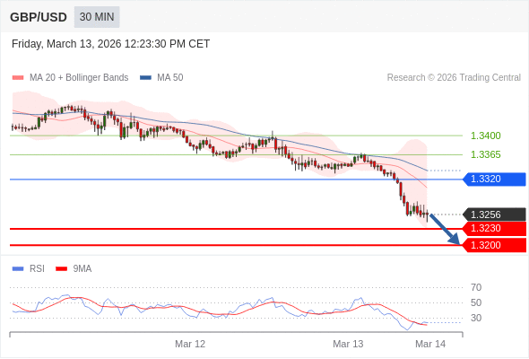 在 1.3320 之下,看跌,目标价位为 1.3230 ,然后为 1.3200 。