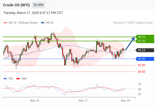 在 93.30 之上,看涨,目标价位为 97.20 ,然后为 98.10 。