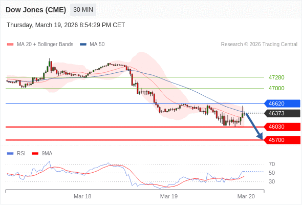 在 46620 之下,看跌,目标价位为 46030 ,然后为 45700 。
