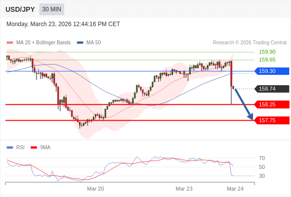 交易策略: 在 159.30 之下,看跌,目标价位为 158.25 ,然后为 157.75 。