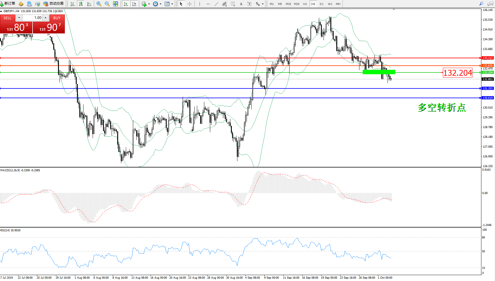 交易策略:132.204下方看跌,目标131.203、130.610