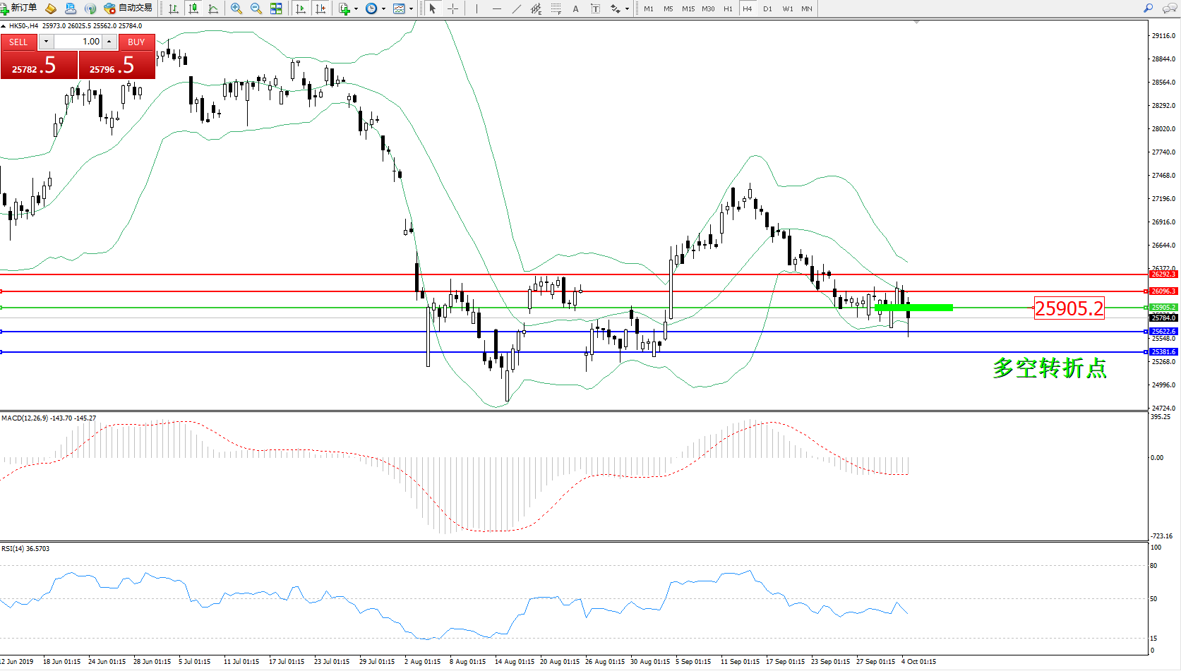 恒指HK50 ——4小时K线图显示: