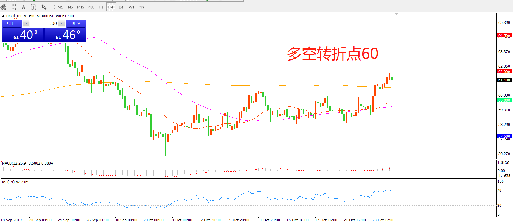 交易策略:在60.00之上看涨,目标62.00     64.50