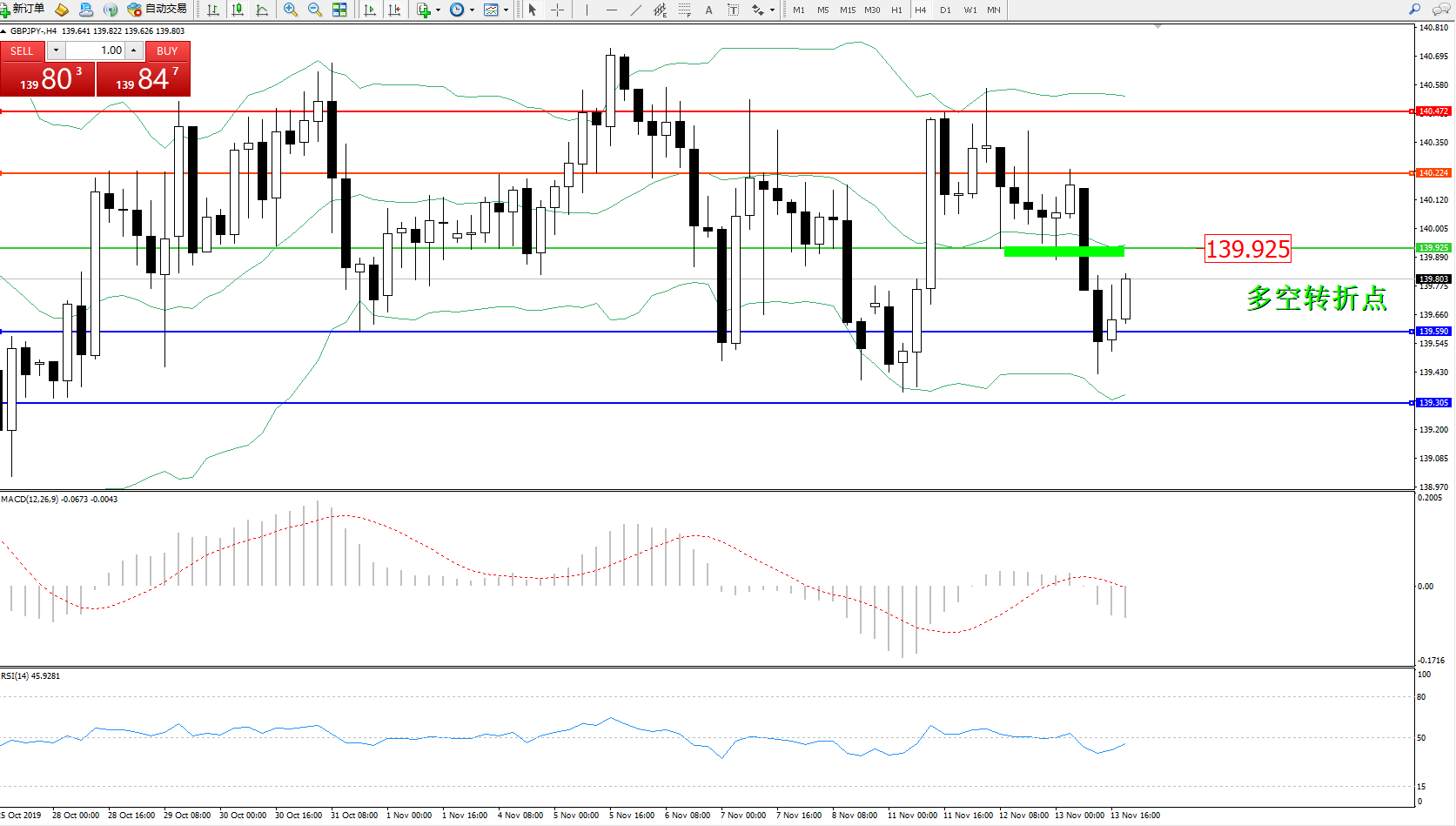 交易策略:139.925下方看跌,目标139.590、139.305